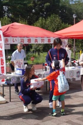 女子サッカーWEリーグで活躍中のノジマステラ神奈川相模原のホームゲームで、赤い羽根共同募金活動を実施しました。
