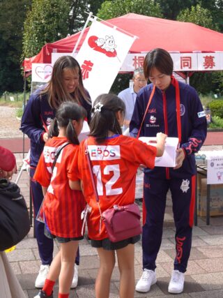 風間優華選手(GK)と小野奈菜選手(DF)のお二人も応援に駆けつけ、共同募金ブースを盛り上げてくださいました!