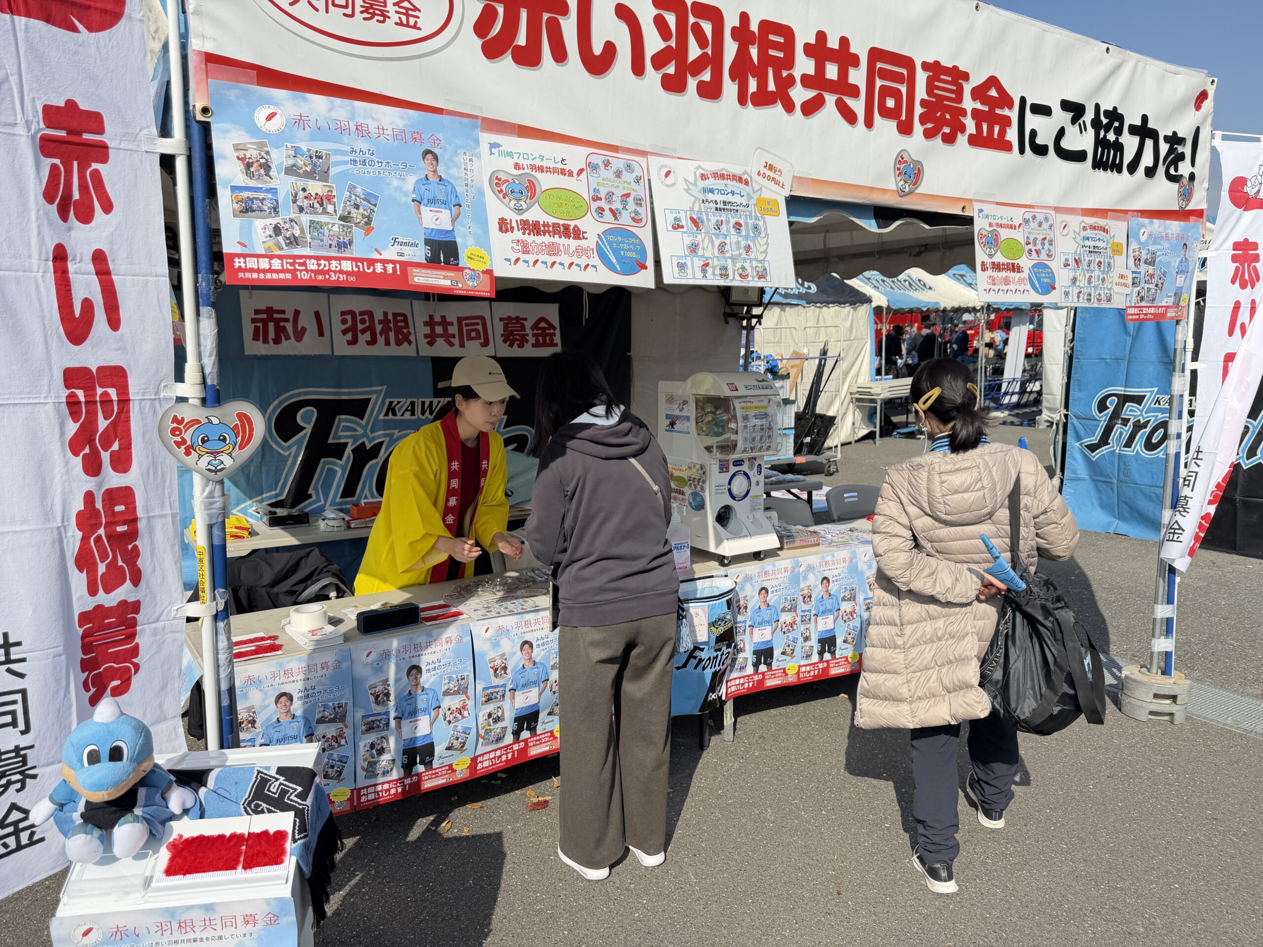 当日、同競技場メインスタンド前広場の特設ブースで募金活動を実施し、ご協力いただいた方々へ「2025赤い羽根×ふろん太コラボバッジ」をお渡しして、チームとの協働による共同募金の広報活動も実施することができました。