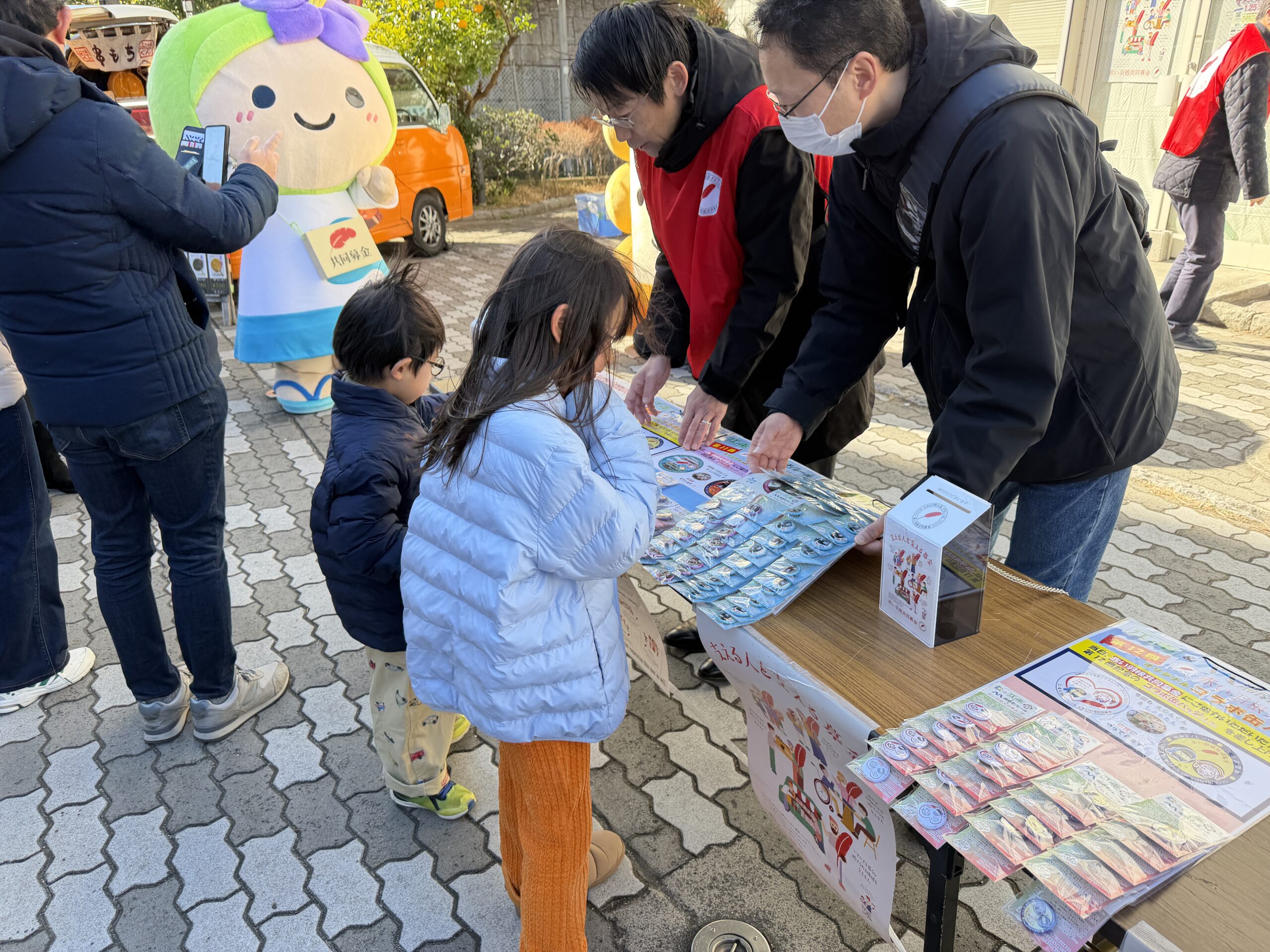募金にご協力いただいた皆さまには、第12弾となる特製コラボ缶バッジ2種類などからいずれかを選んでいただき、お渡ししました。