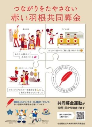 10月1日(水)から、赤い羽根共同募金運動が始まりました。今年も、県内のプロスポーツチームと協働して、運動啓発用のポスターや広報紙を作成し、募金活動にご協力いただいています。